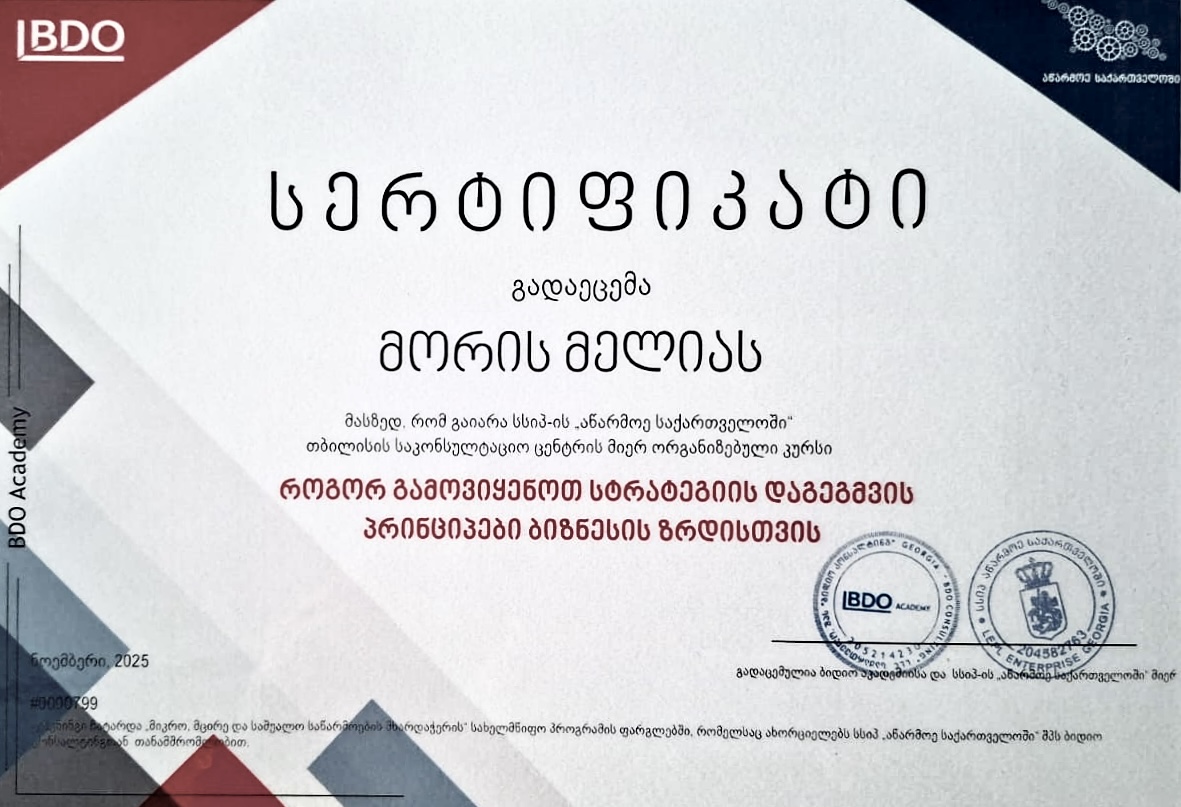ბიზნესის განვითარების კონსალტინგი.