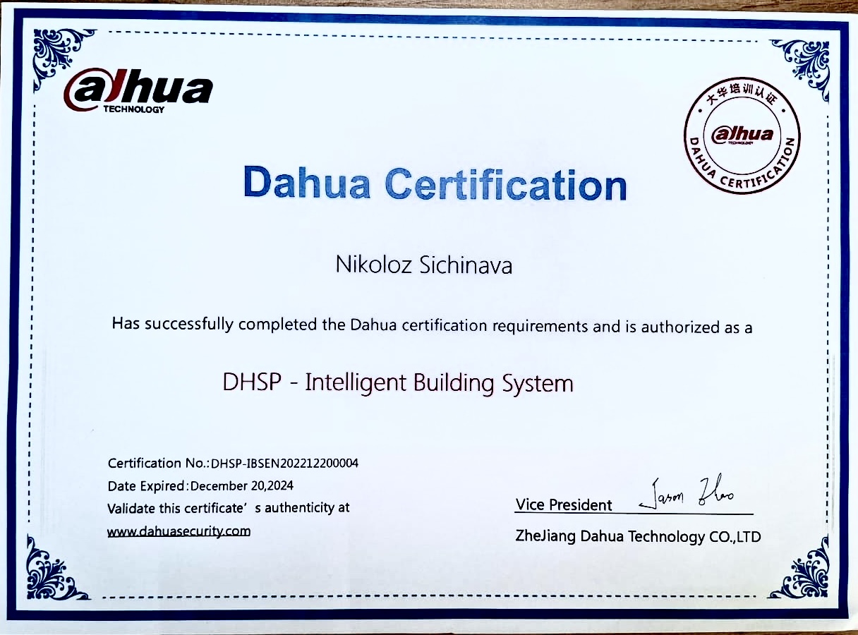 საერთაშორისო ვენდორებთან (Hikvision, Dahua) დადასტურებული კომპეტენციები და პარტნიორობა უზრუნველყოფს: